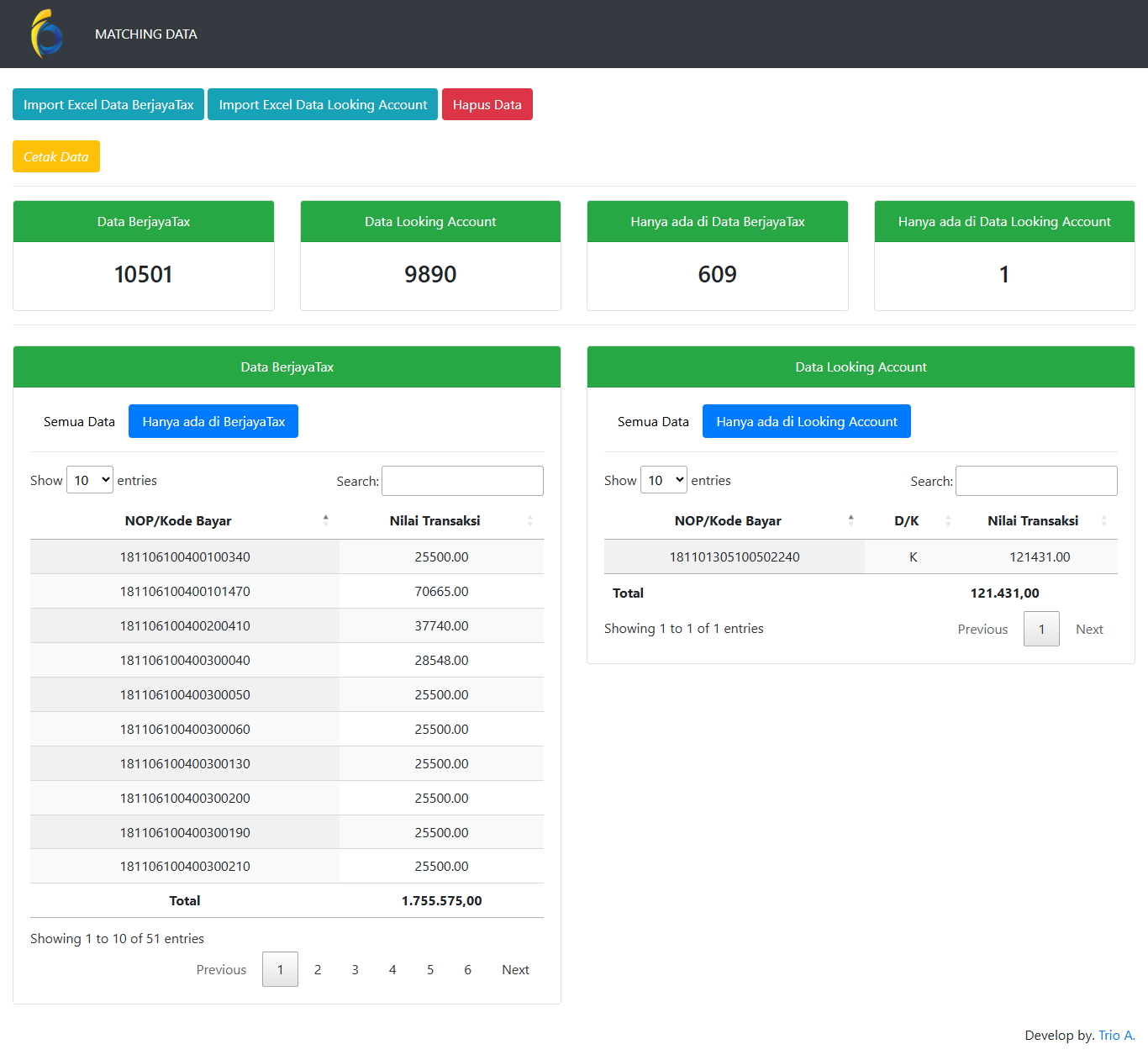 - Compare and match data to support the reconciliation process of local tax revenues.