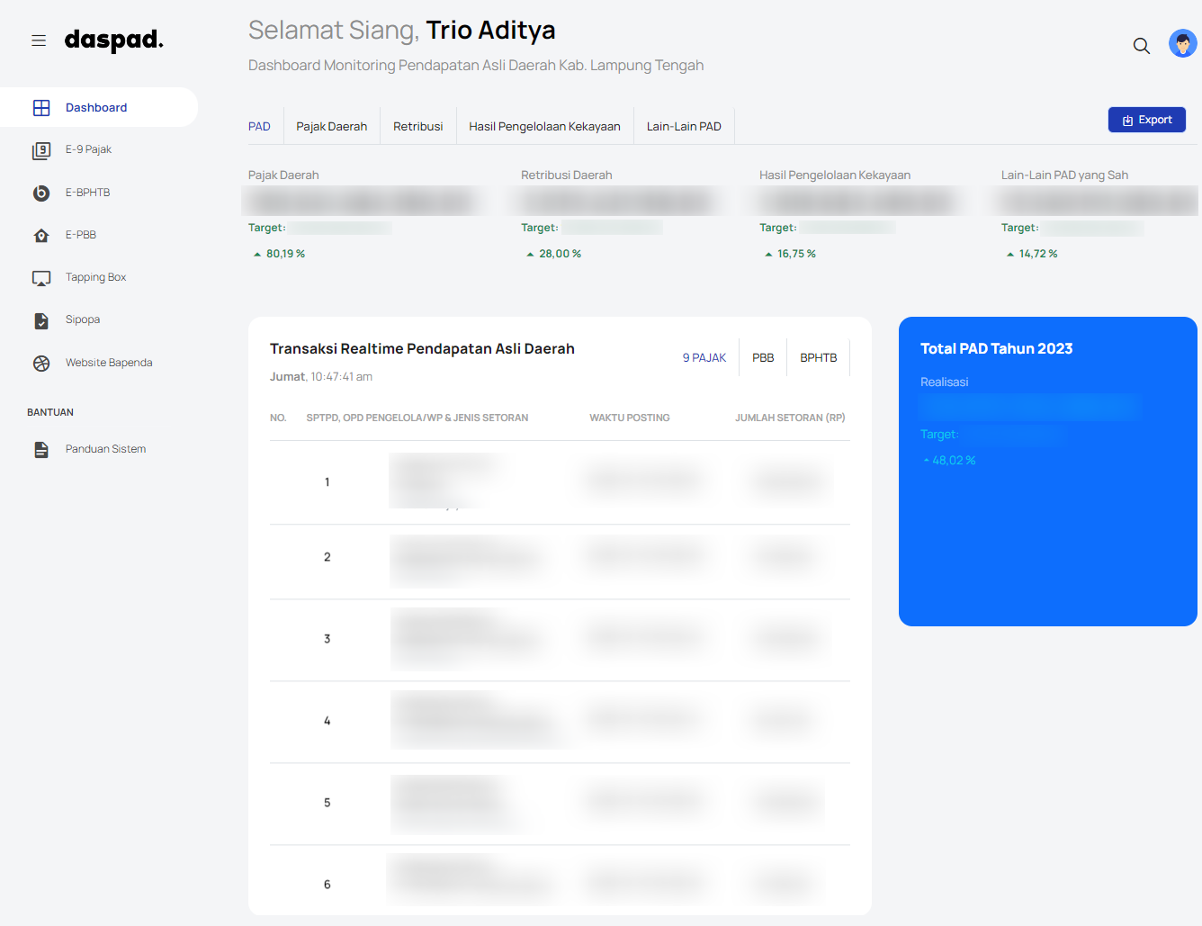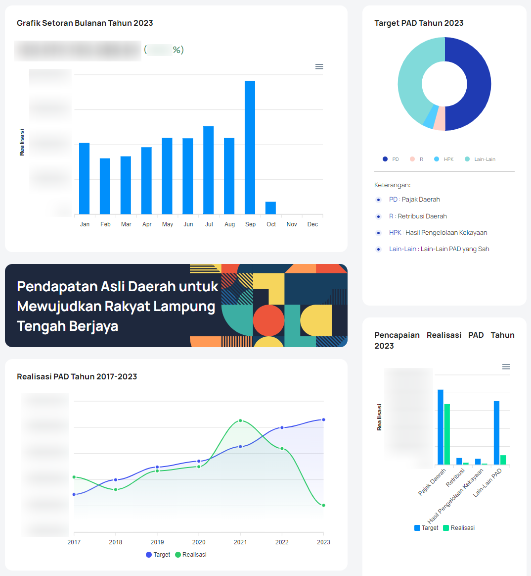 : Provides visualization and reporting of Regional Revenue data in real-time for Bapenda internal